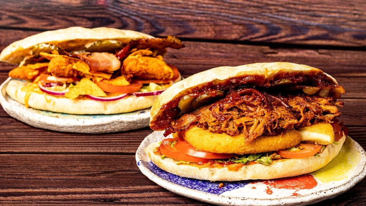 Szarpana kaczka, sos hoi sin orzechowy, kolendra, rzodkiew, piklowana marchew, mix świeżych ziół, rzepa, dymka, ogórek, majonez, kumkwat