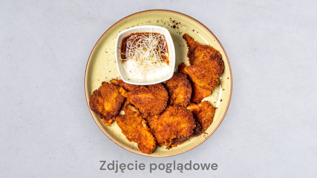 Tortilla z warzywami, stripsami i sosami. Zdjęcie poglądowe