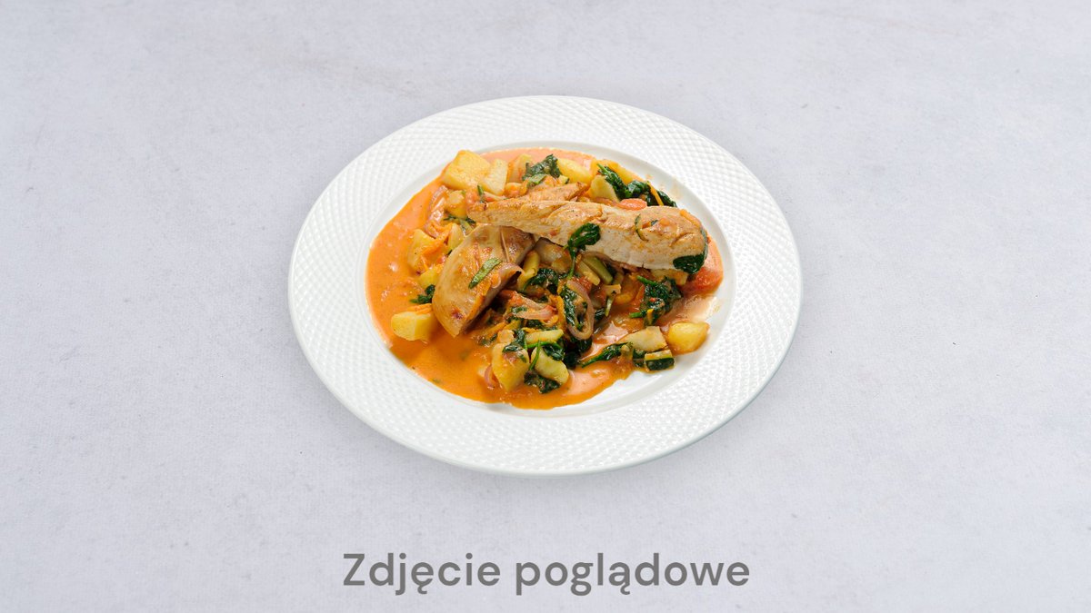 Świeży sos pomidorowy, ser mozzarella, ogórek konserwowy, ananas, pomidor, kurczak, przyprawa curry, oregano