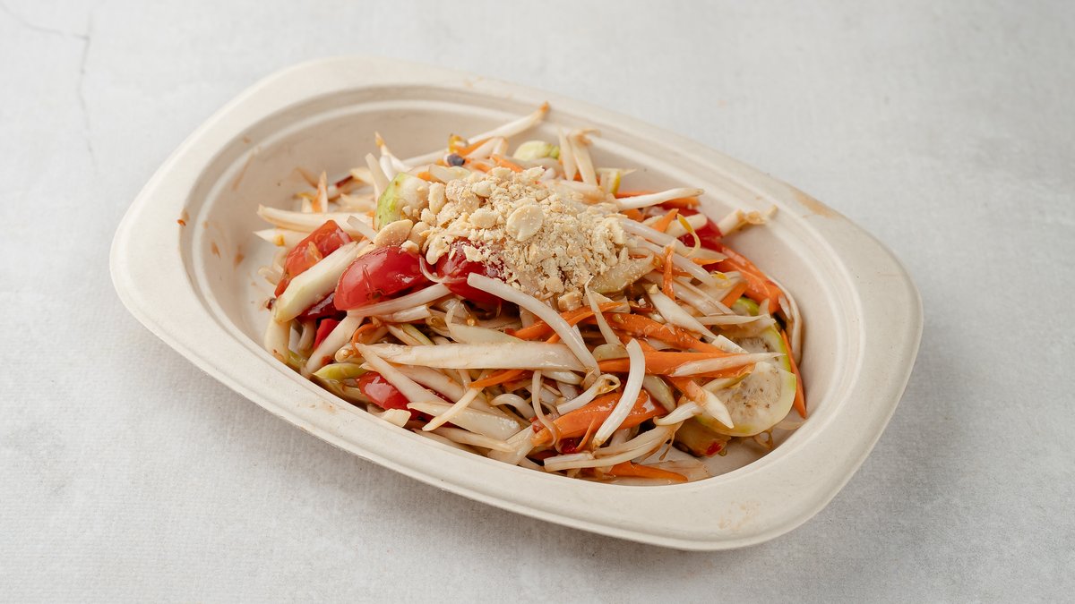 Ukochana sałatka Tajów. Świeża papaja, pomidor, papryczka chili, sos z tamaryndowca, sos rybny. Wersja Tajska z sosem ze sfermentowanej ryby – „plara”. Wersja Farrang (dla turystów), bez sosu – „tam tai”
