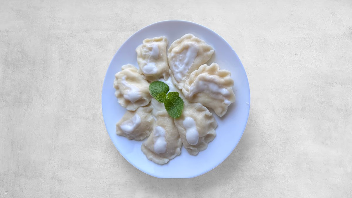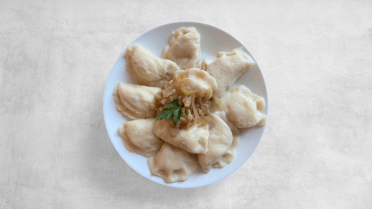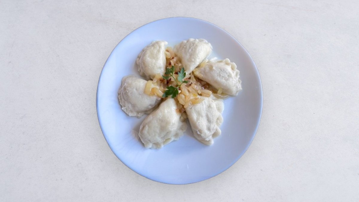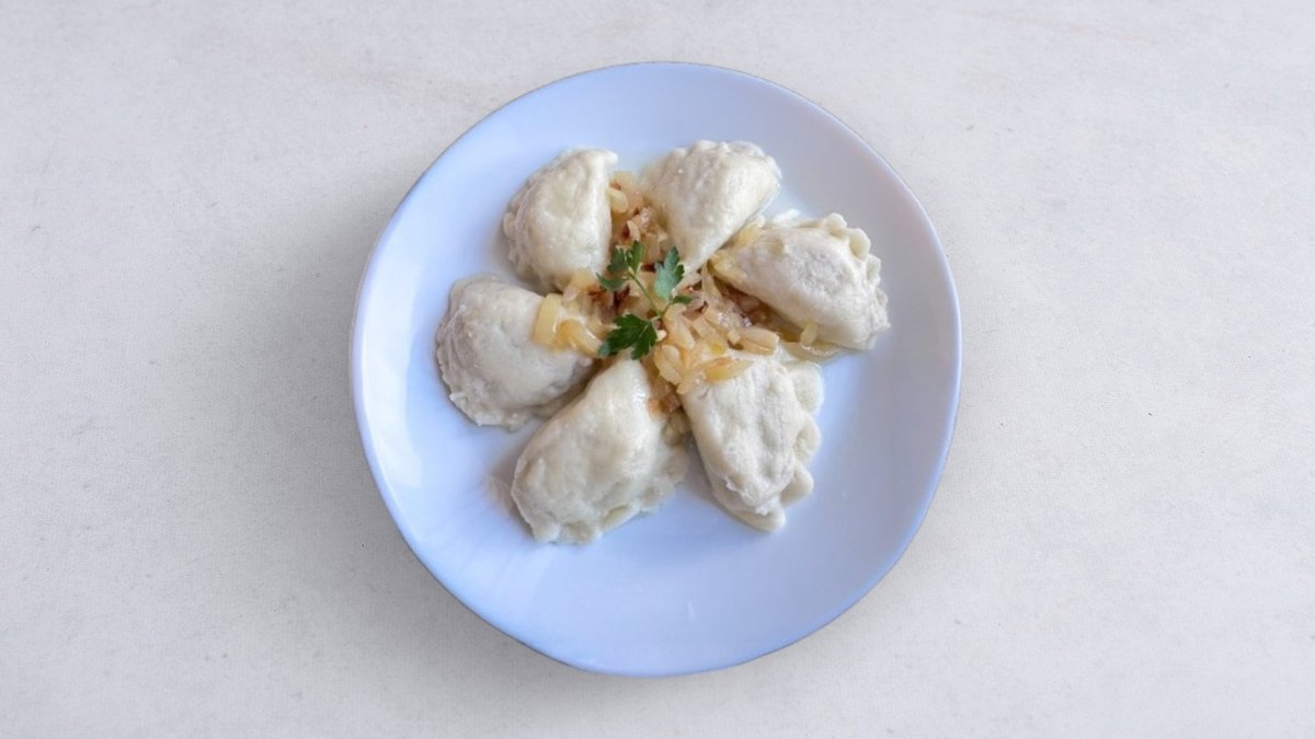 6 szt. Domowe, ręcznie robione z serem, ziemniakami i cebulą. Sposób przyrządzenia do wyboru. Dodatek do wyboru. Zdjęcie poglądowe