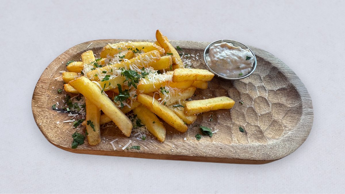 Fryty 200 g ,oliwa truflowa, parmezan, natka plus sos aioli