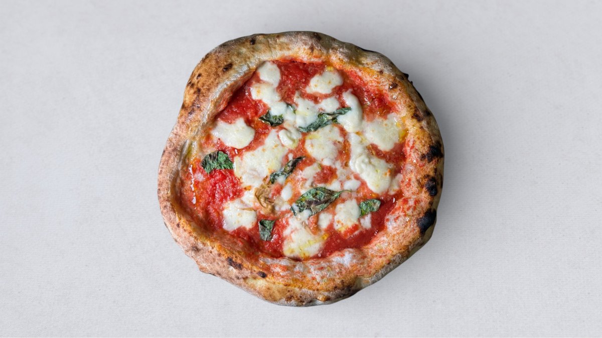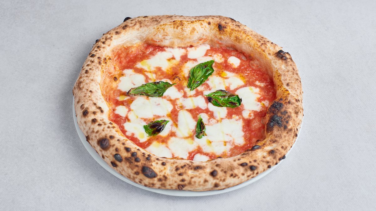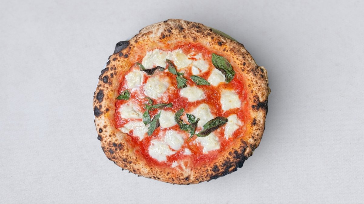Pomidory San Marzano DOP, mozzarella di bufala DOP, Grana Padano DOP, bazylia