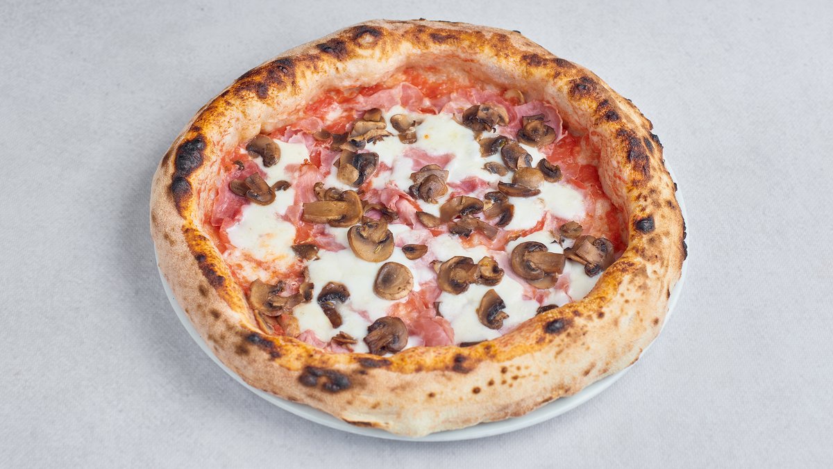 Pomidory San Marzano DOP, Mozzarella fior di latte, Prosciutto Cotto Levoni, Pieczarki z czosnkiem i koprem włoskim