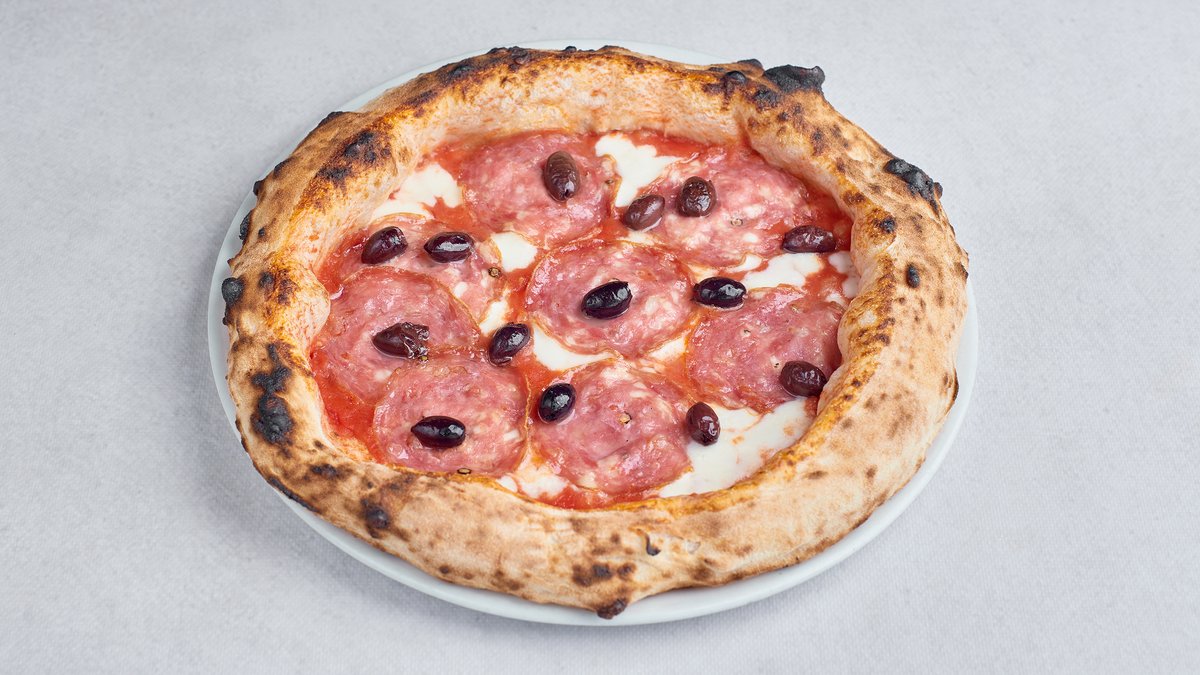 Pomidory San Marzano DOP, mozzarella fior di latte, Salame San Gennaro Levoni, Prosciutto Cotto Levoni, Coppa Levoni, Speck, salsa tonnata, czarny pieprz