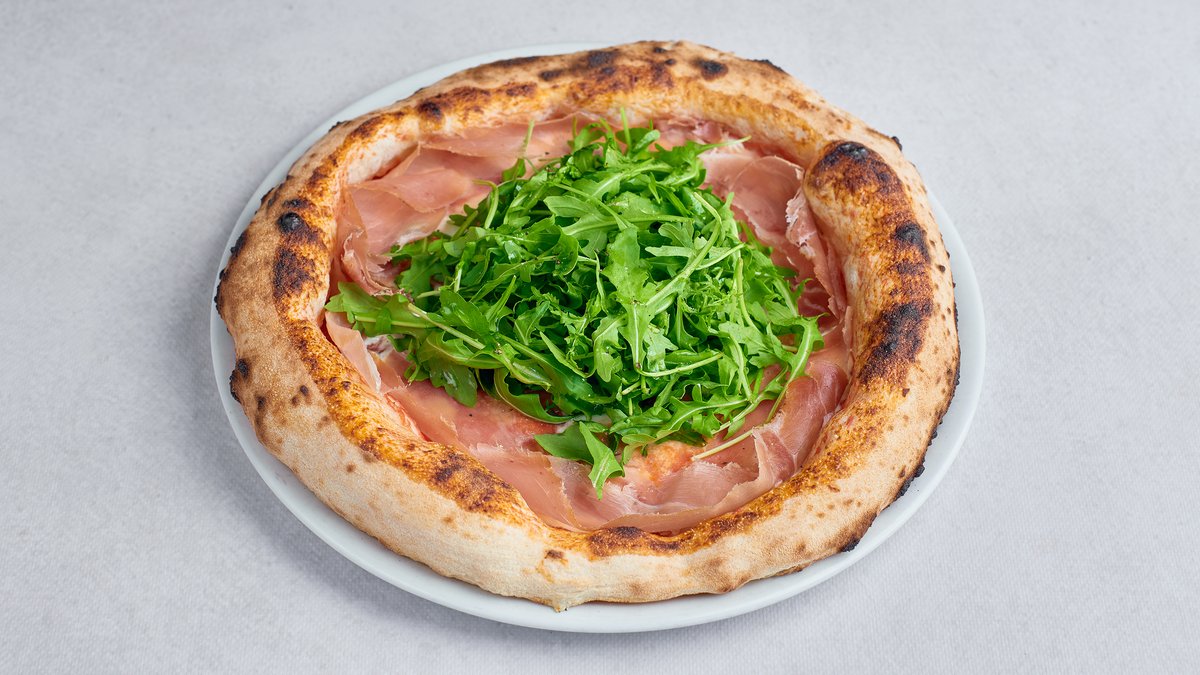 Pomidory San Marzano DOP, mozzarella fior di latte, Speck, mascarpone, rukola