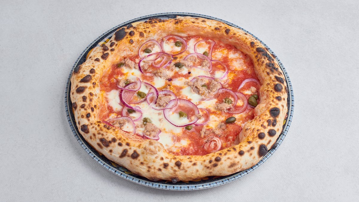 Pomidory San Marzano DOP, mozzarella fior di latte, tuńczyk, czerwona cebula, kapary