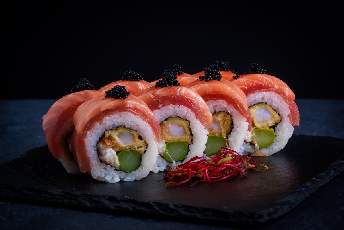 Łosoś, tuńczyk, seriola, serek philadelphia, ogórek, rzepa, tykwa