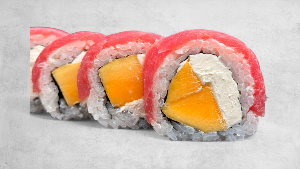 tuńczyk, boczek, ser Philadelphia, ser żółty , tagorashi, sos Sriracha ,limonka , + sos sojowy, imbir,spicy mayo, wasabi ,