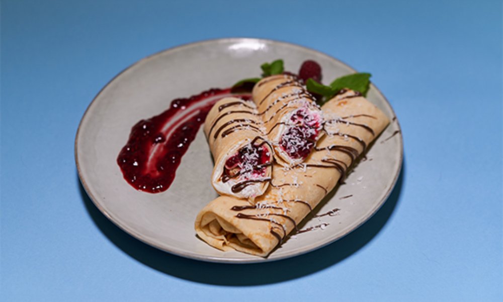 Naleśniki z Twarożkiem Sernikowym i Dżemem Wiśniowym (2 szt.)