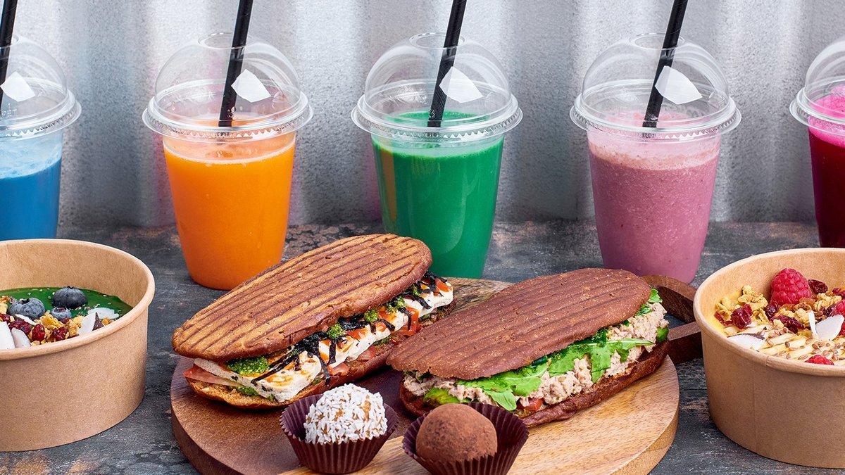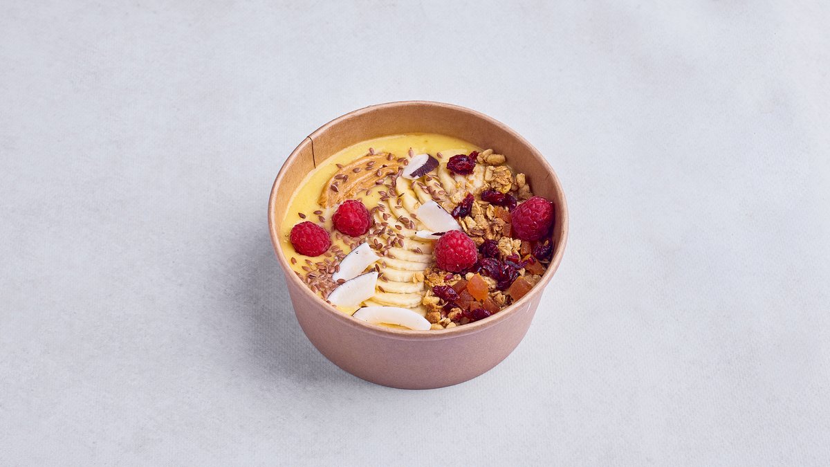 Ananas, jabłko, mango, banan, imbir, kurkuma, muesli, suszona żurawina, malina, banan, len, pasta orzechowa, suszone morele