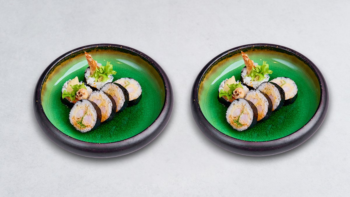 Krewetka, ostry majonez, kaczka, węgorz, słodki sos, sezam