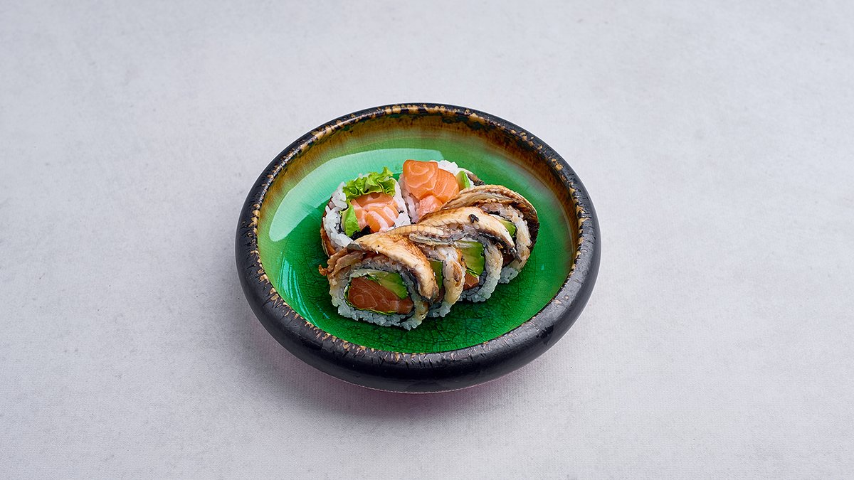Krewetka w tempurze, sałata, ostry majonez, węgorz, słodki sos, sezam (zdjęcie poglądowe)