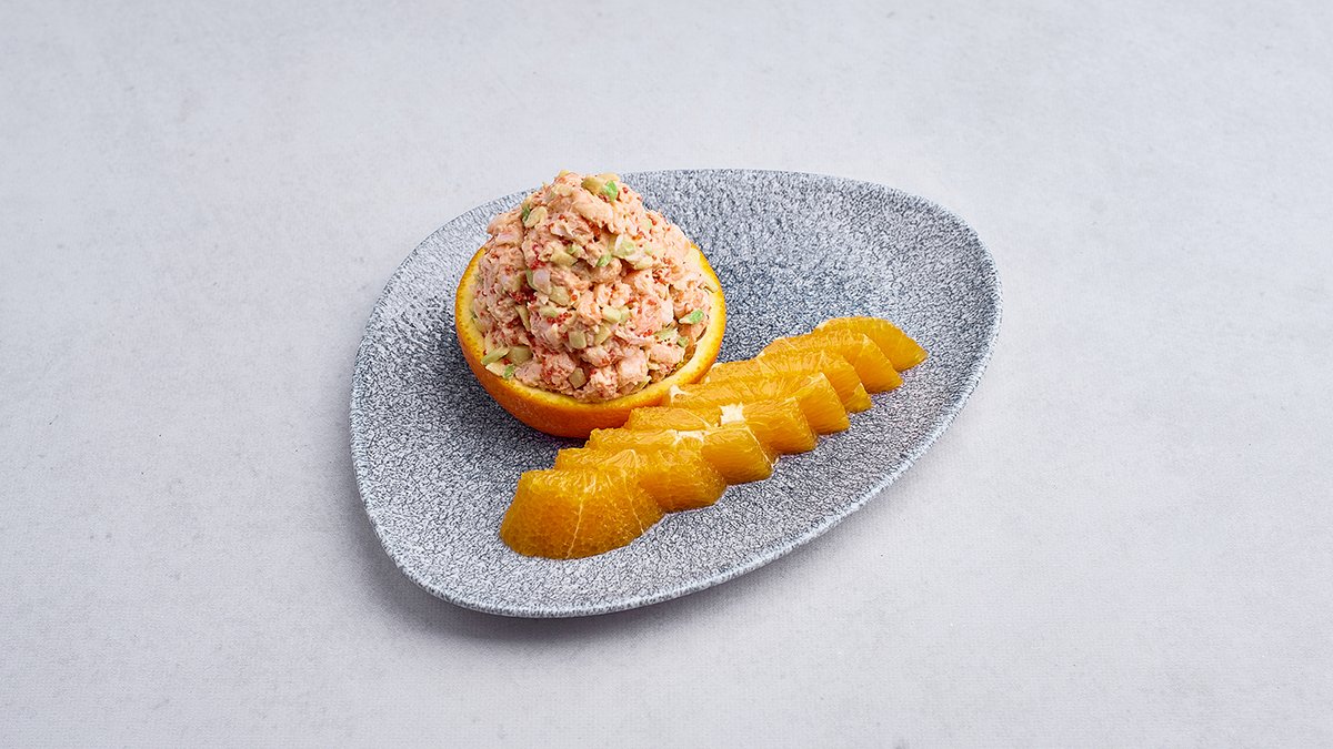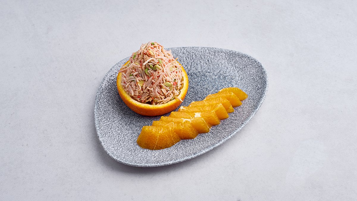 Krewetka w tempurze, sałatka z paluszków krabowych, łosoś, owinięte w tamago