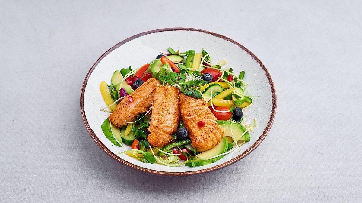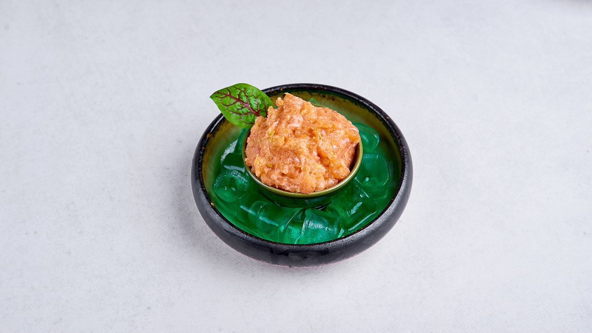 Krewetka w tempurze, łosoś, sałata ostry majonez