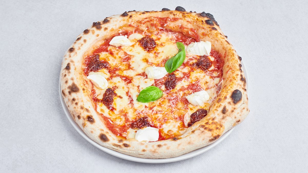 Mozzarella fior di latte, sos pomidorowy San Marzano, n'duja, mascarpone, parmezan, bazylia
