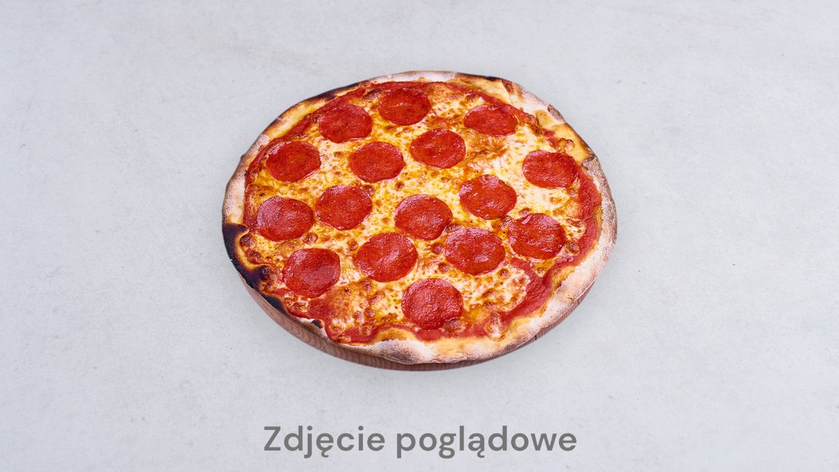 Mozzarella fior di latte, sos pomidorowy San Marzano, salami milano, parmezan, bazylia