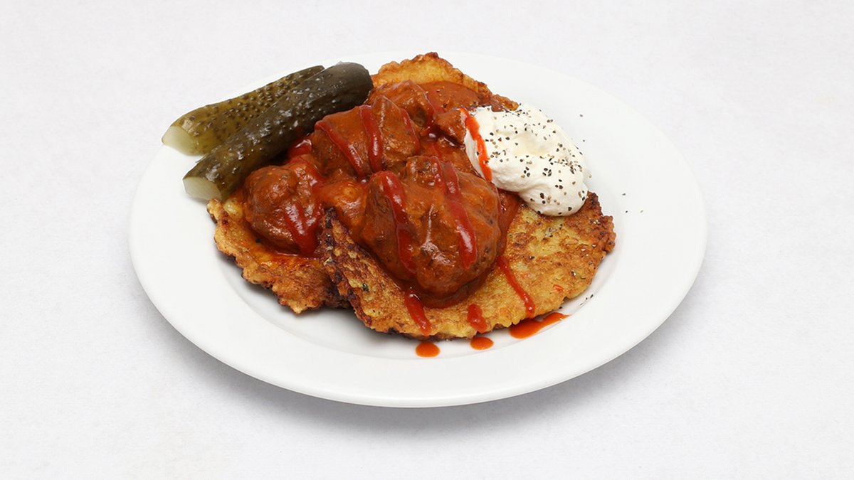 Placki ziemniaczane z gulaszem