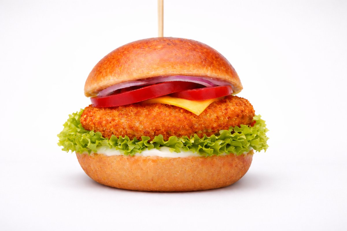 Burger z chrupiącym kurczakiem i cheddarem