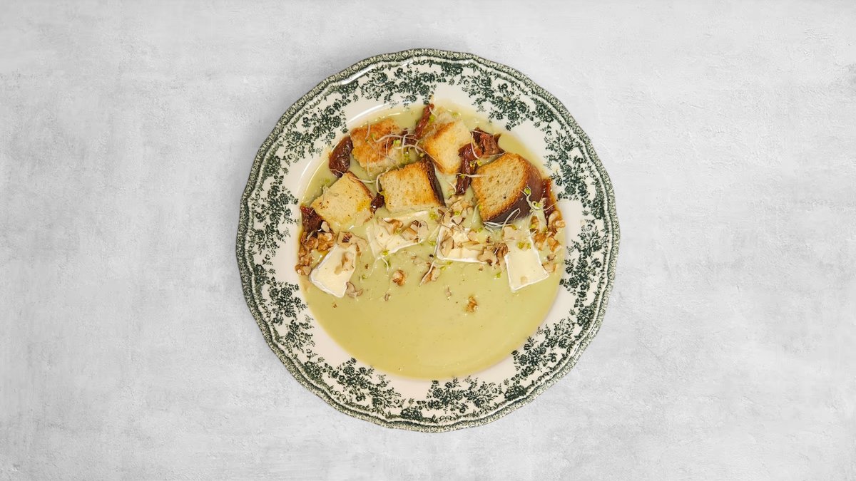 Krem z białych warzyw z jajkiem, słonecznikiem i szczypiorkiem
