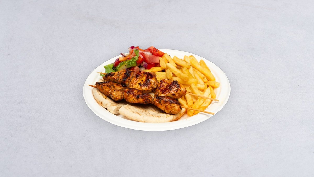 Souvlaki z kurczaka na talerzu