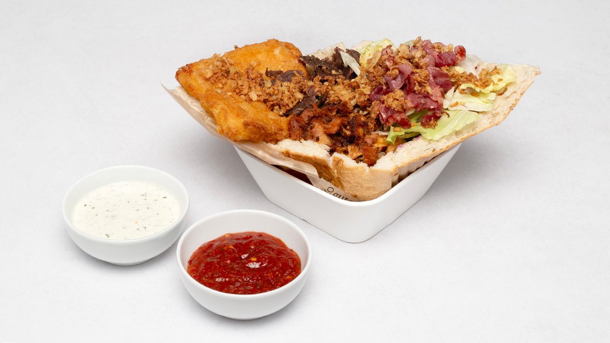 Klasyk w najlepszym wydaniu! Chrupiąca, grillowana buła wypełniona świeżymi warzywami, prażoną cebulką i wyborem: firmowy kotlet lub soczysty kurczak. Do tego dobierasz dwa ulubione sosy, które nadają jej dokładnie taki charakter, jak lubisz. Sycąca, aromatyczna i idealna na głód „na serio”. A dla prawdziwych Knyszożerców - opcja z podwójnym kotletem!