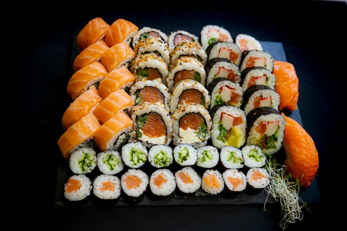 Classic roll 10 szt California roll 10 szt Philadelphia roll 10 szt Hosomaki łosoś 8 szt Hosomaki ogórek 8 szt Nigiri łosoś 2 szt