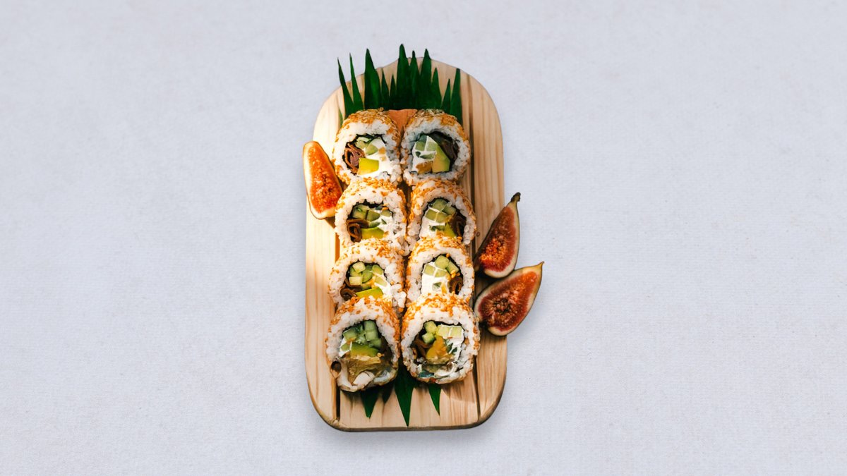 Bez ryżu 8 szt Łosoś, awokado, oshinko, surimi, ogórek, kanpyo, tobiko W zestawie są imbir, wasabi, soja sos i pałeczki.