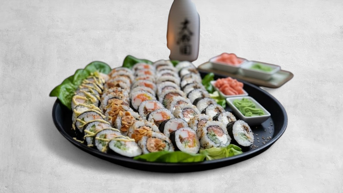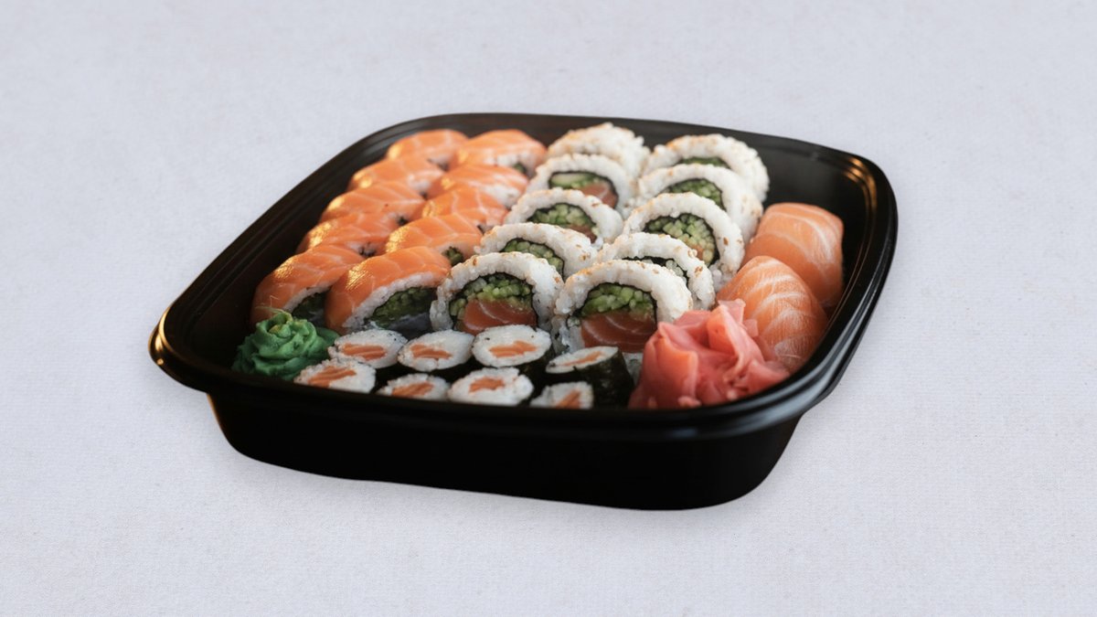 California grill roll 10 sztuk Futomaki łosoś 10 sztuk Hosołosoś 8 sztuk Hosomaki ogórek 8 sztuk Nigiri mix 4 sztuki