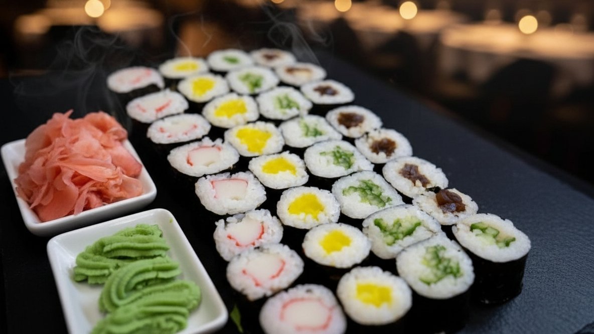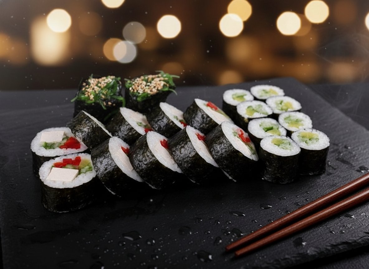 10 szt futomak (ogórek, ser tofu, awokado, kampio, oshinko, papryka słodka) 8 szt Hoso ogórek 2 szt Gunkan Wakame
