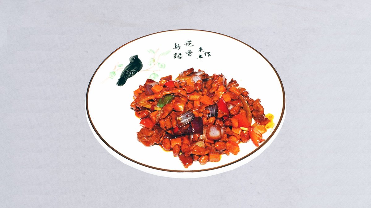 kurczak w słodko-kwaśnym, lekko pikantnym sosie syczuańskim z warzywami, orzeszkami i ryżem