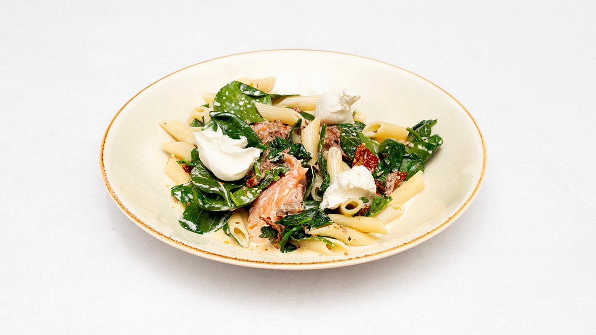Penne z wędzonym łososiem