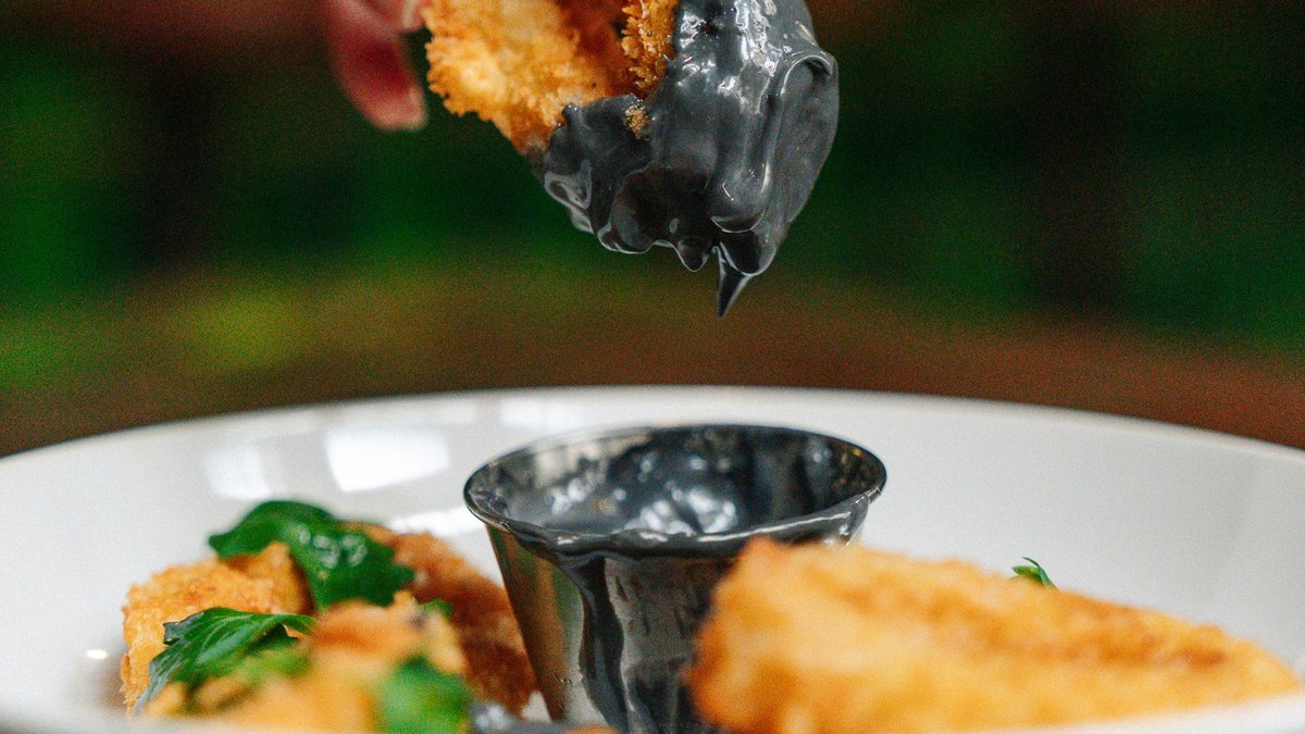 Smażone kalmary / sos z anchois i sepii / pietruszka /