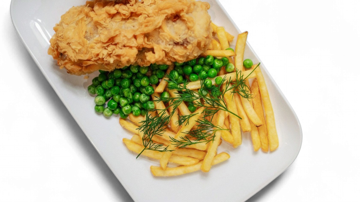 Dorsz/ fryty / sos tatarski / groszek / koperek
