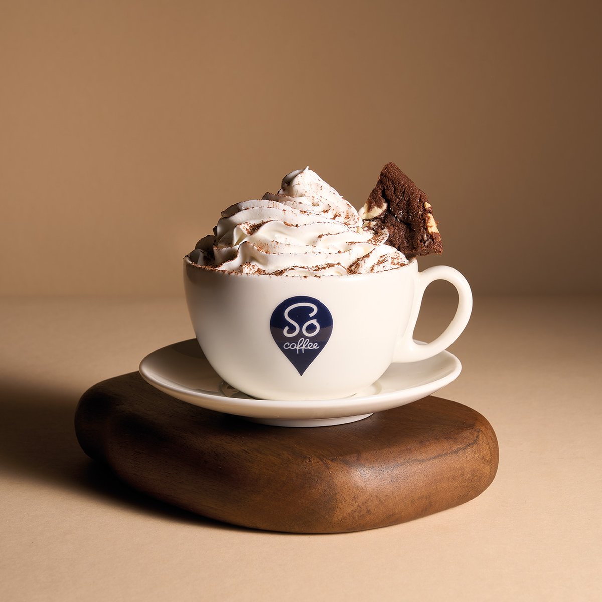 Rozpływająca się w ustach kawa z nutą słodyczy! Aromatyczne espresso połączone z kremowym mlekiem i syropem o smaku ciasteczka, udekorowane puszystą bitą śmietaną i chrupiącym ciasteczkiem czekoladowym, całość oprószona kakao. Idealna dla fanów deserowych przyjemności! Serwujemy bez bitej śmietany.