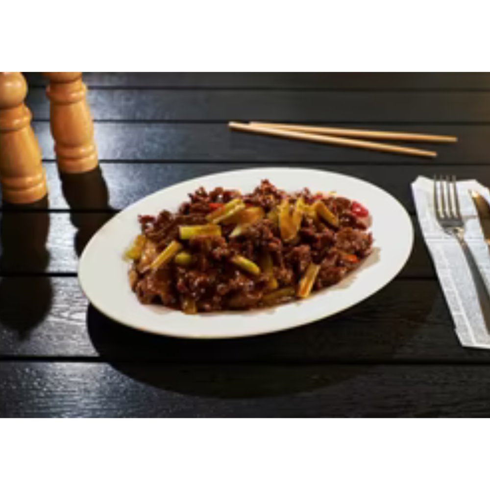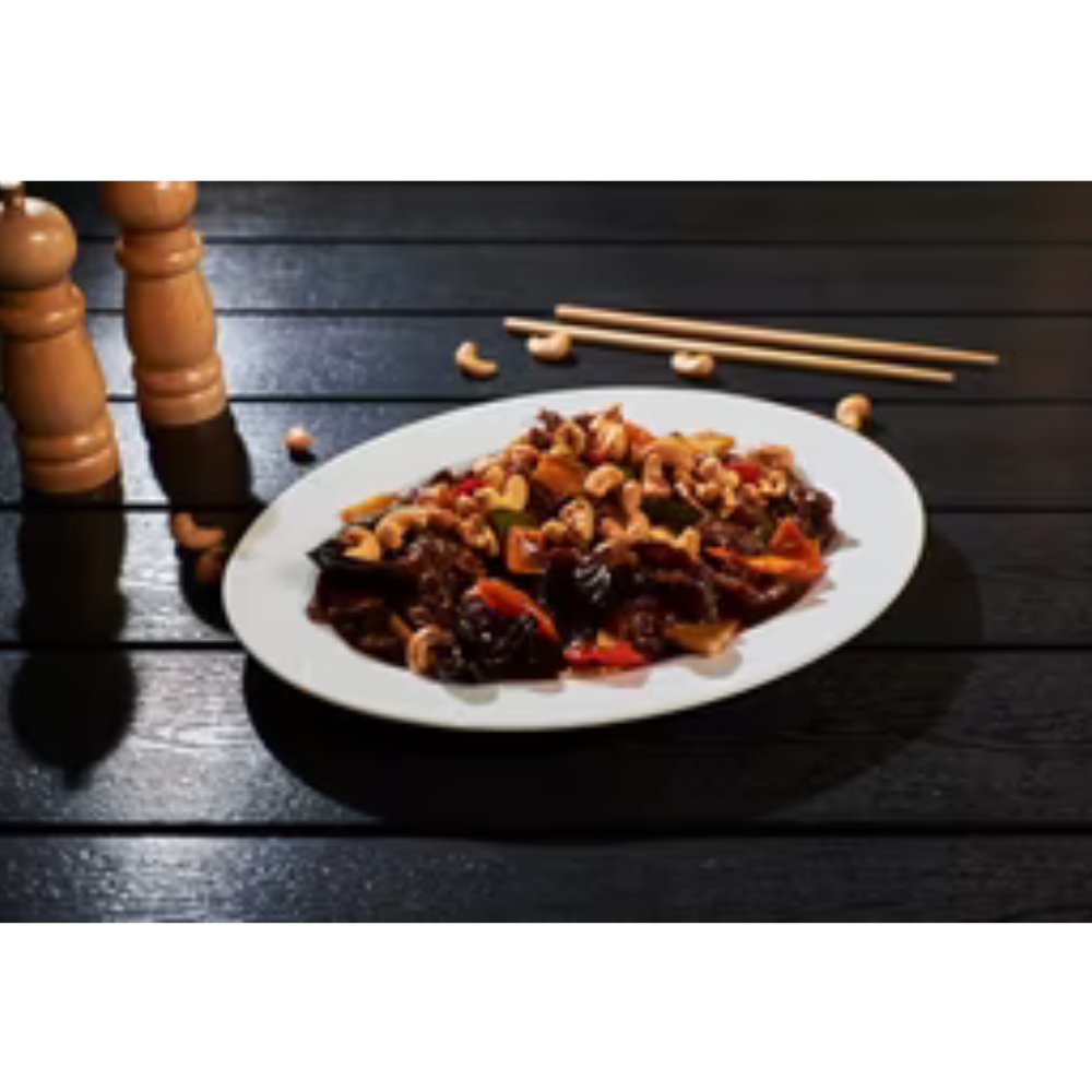 Vită, bambus, ardei verde, ardei roșu, ciuperci negre, alune caju 300g
