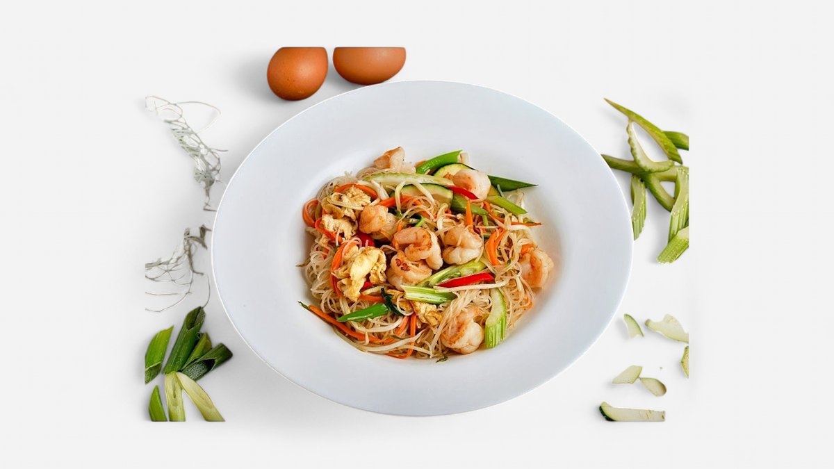 Spaghete, ceapă, bambus, morcov, varză, ardei gras, ciuperci negre, fructe de mare 300g