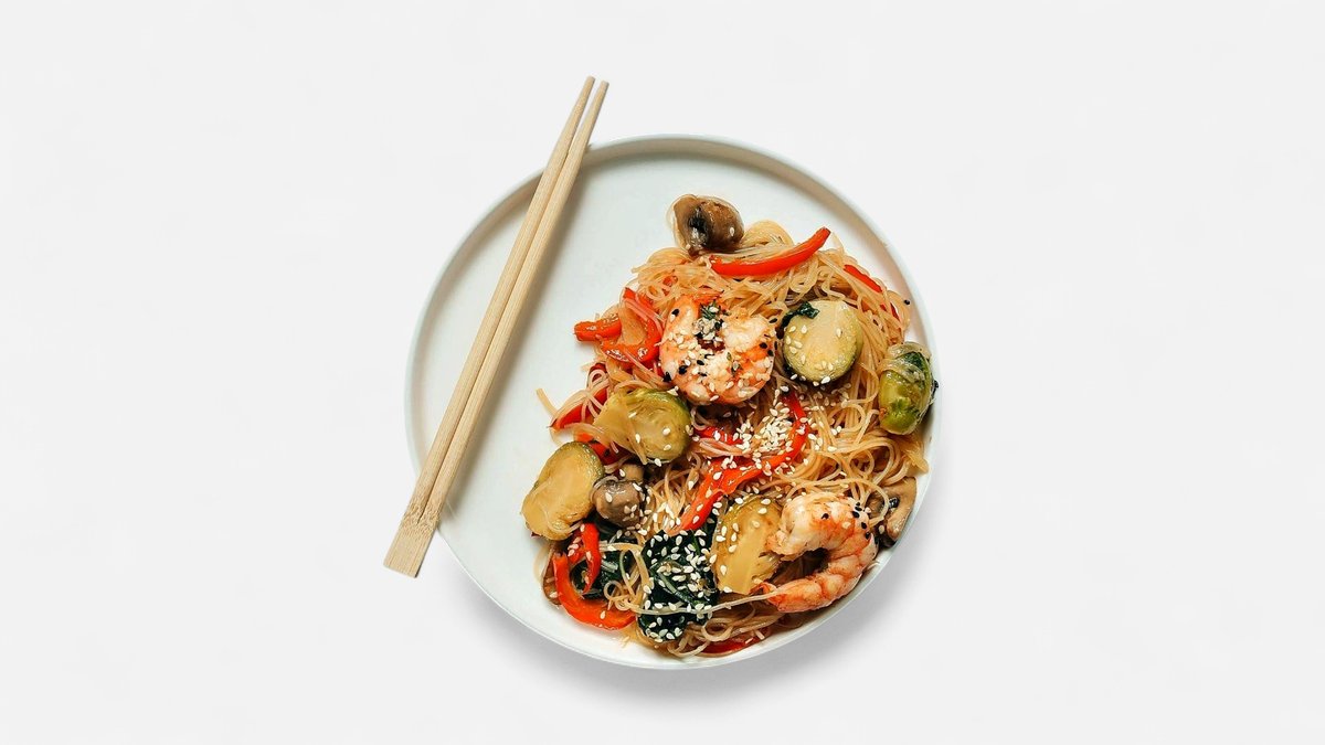 Spaghete, ceapă, bambus, morcov, varză, ardei gras, ciuperci negre, carne 350g