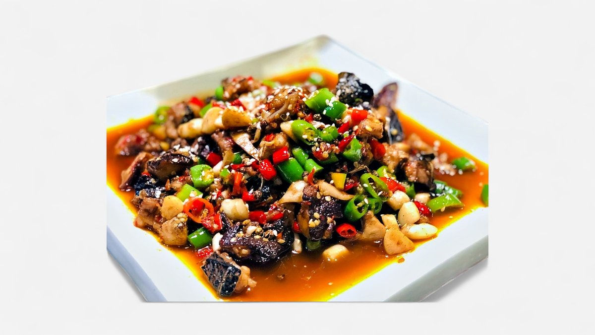 Rață, ceapă, morcov, ciuperci negre, bambus, ardei gras 350g