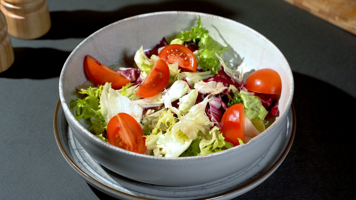 350gr - Năut, roșii cherry, castraveți murați, rodie, măsline, pătrunjel, usturoi, lămâie, tahini, ulei de măsline, muguri de pin