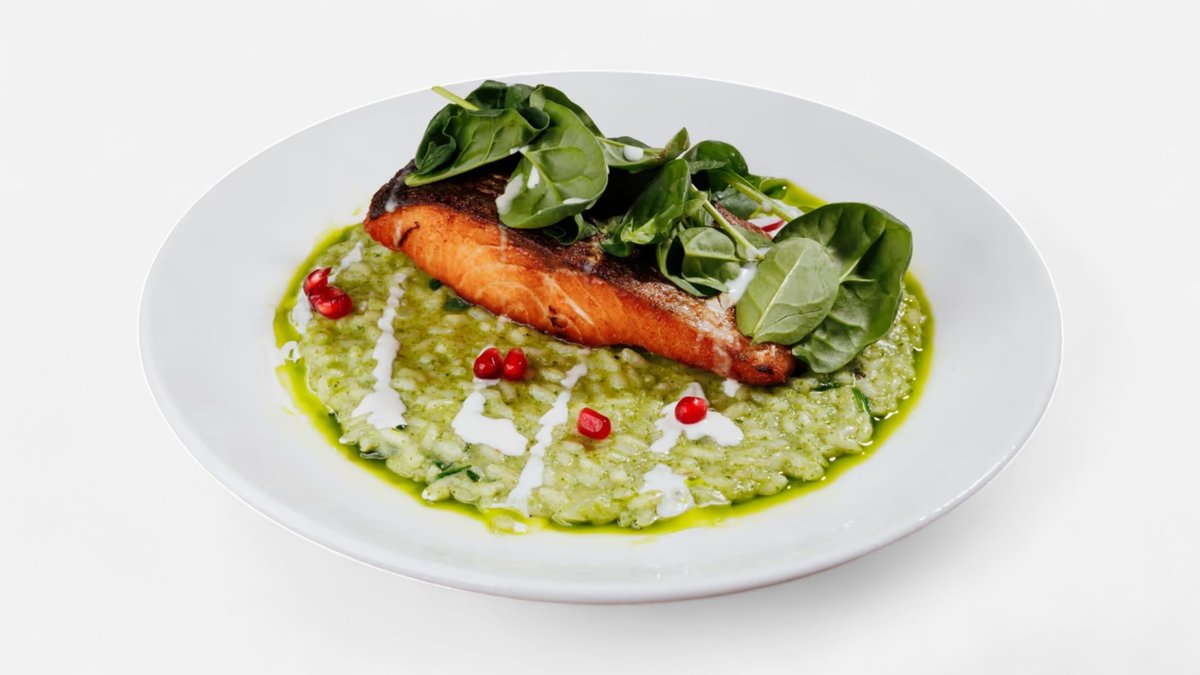 350 gr-Creveți, năut, rodie, usturoi, lămâie, tahini, ulei de măsline, muguri de pin