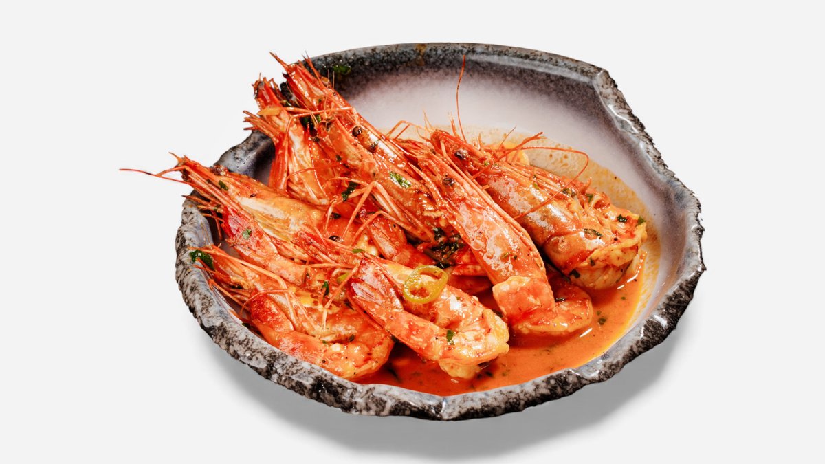 350gr -creveti, sos rosii, ardei kapia, usturoi, condiment zaatar, ulei de masline, sare, piper