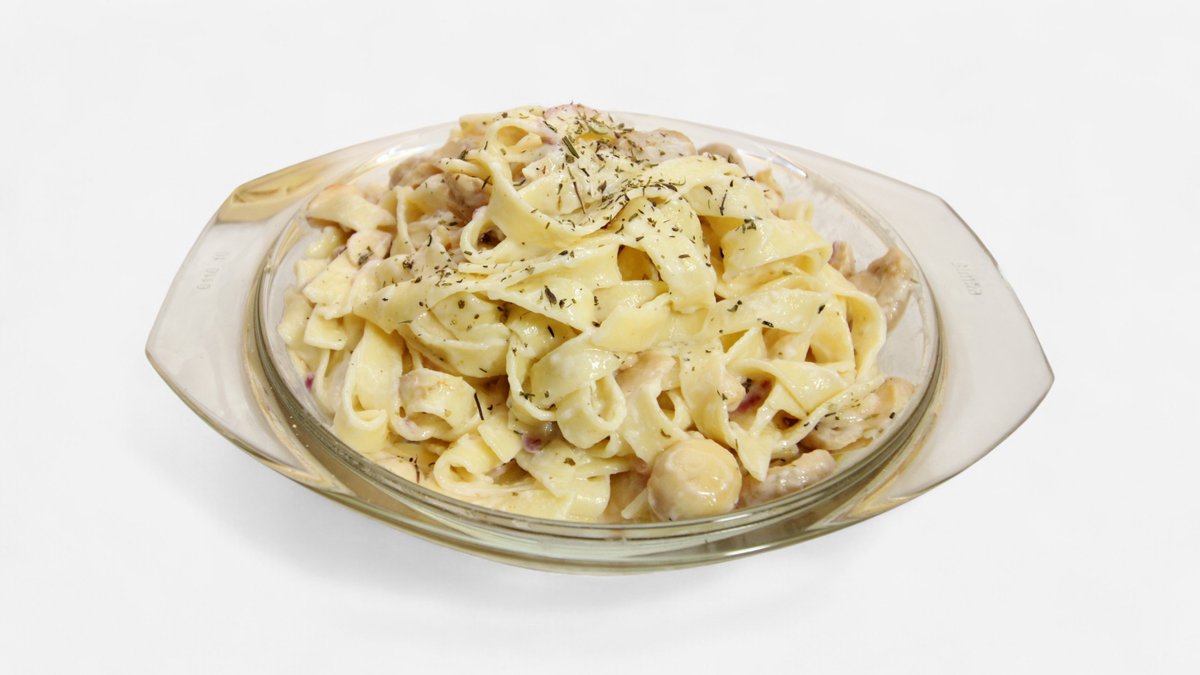 350gr - Tagliatelle, creveți, usturoi, smantana de gatit, sos de rosii, sare,piper