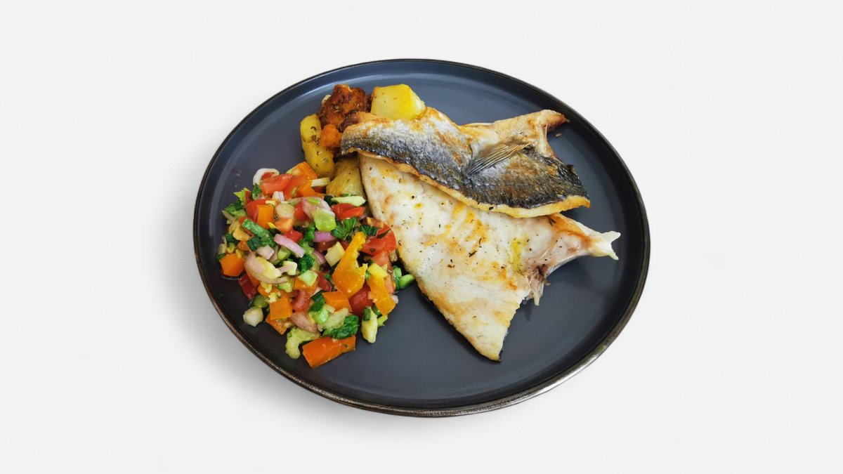 2kg- dorada, biban, creveti, somon, tentacol de calamar, midii, orez, ardei kapia, zuchini, ciuperci, sos usturoi, guacamole, harissa, chimichuri