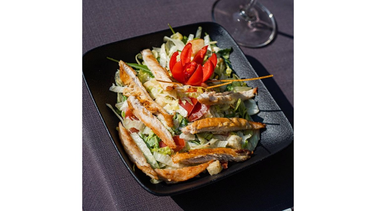 Salată română, pui, ou, bacon, sos Cesar, parmezan și lămâie. 530 g