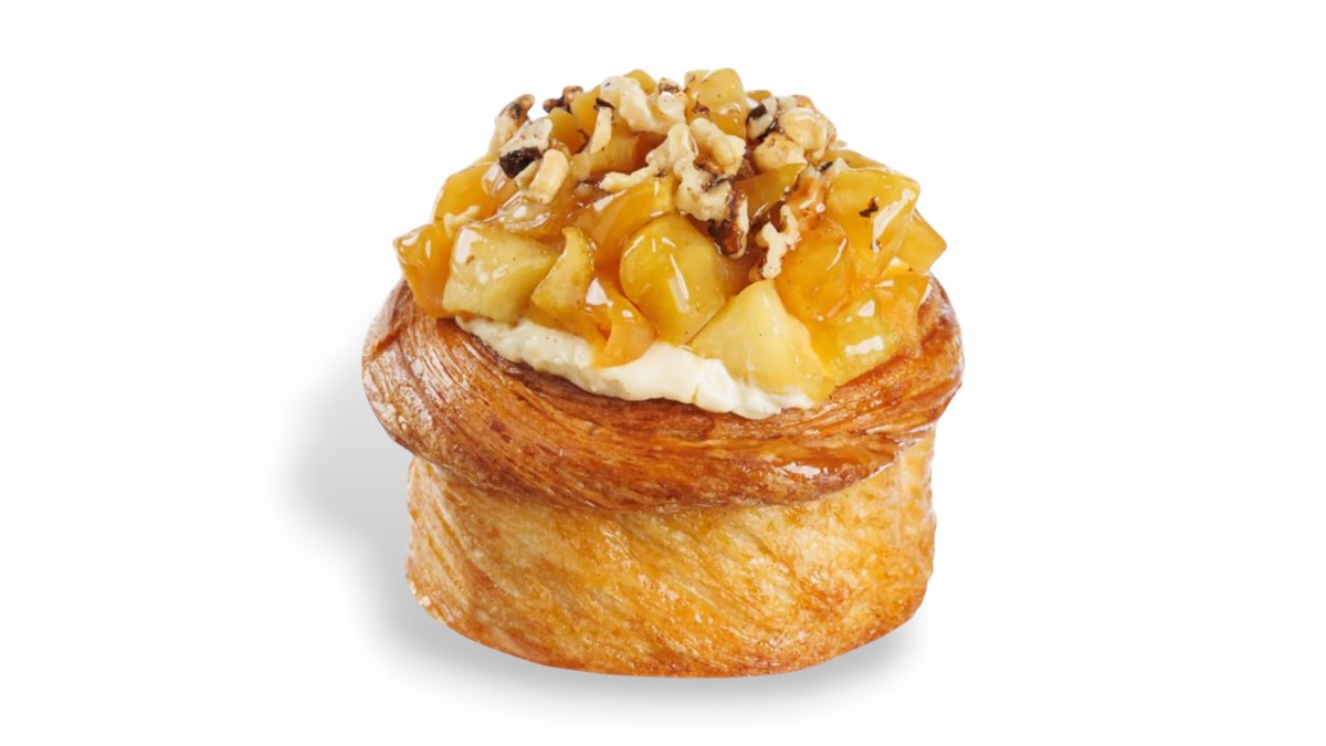 Un coșuleț din aluat franțuzesc de croissant, cu un foietaj fraged și frumos rumenit. La interior, o cremă delicată de vanilie se împletește cu mere coapte aromate cu scorțișoară. La suprafață, cubulețe de măr copt și nucă prăjită aduc textură și căldură. Un desert care reunește prospețimea merelor cu finețea cremei și bogăția aluatului.