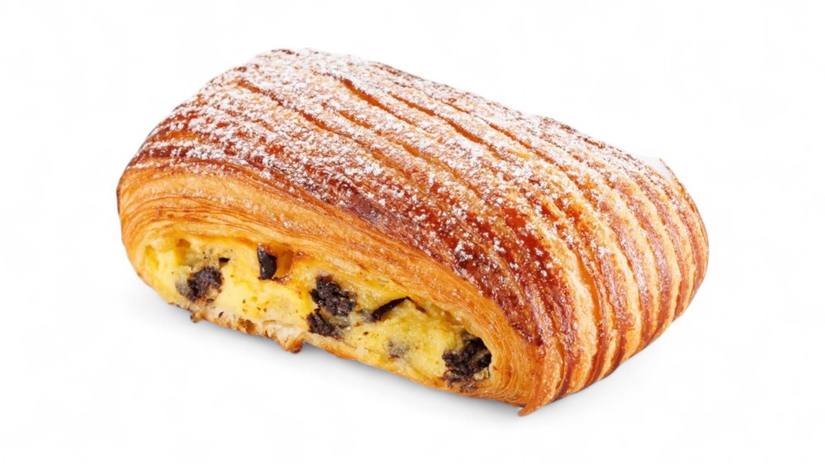 Pepite de ciocolată neagră învăluite de cremă de vanilie într-un foietaj franțuzesc: Pain Suisse delicat de bun-120g