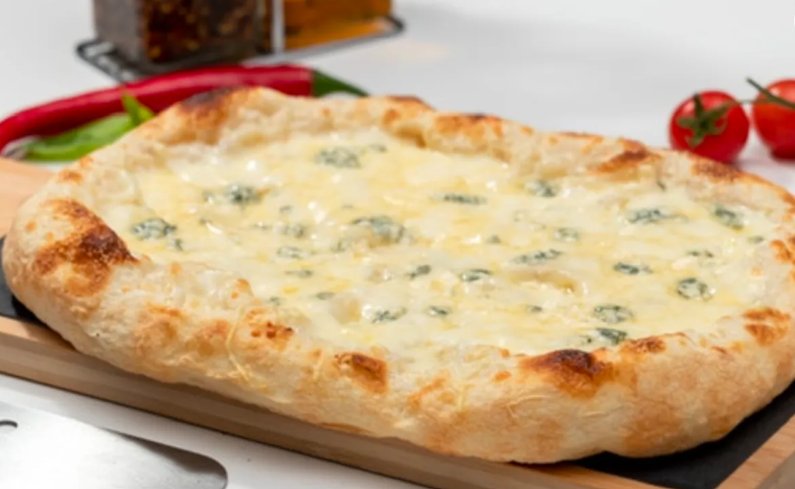 Blat pizza Artizanal, sos de smântână vegetală, mozzarella, parmezan, emmentaler, gorgonzola