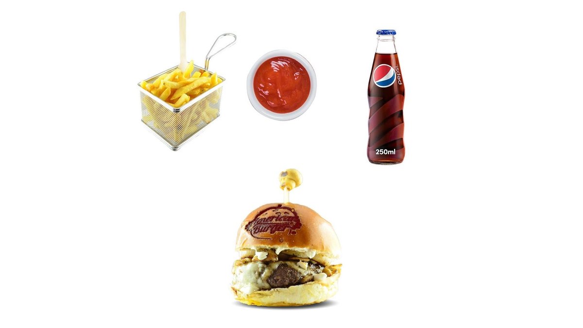 Big Bacon Beef Cheeseburger 250 g / cartofi prajiti la alegere 150 g / sos la alegere 50 g / bautura la alegere 250 ml