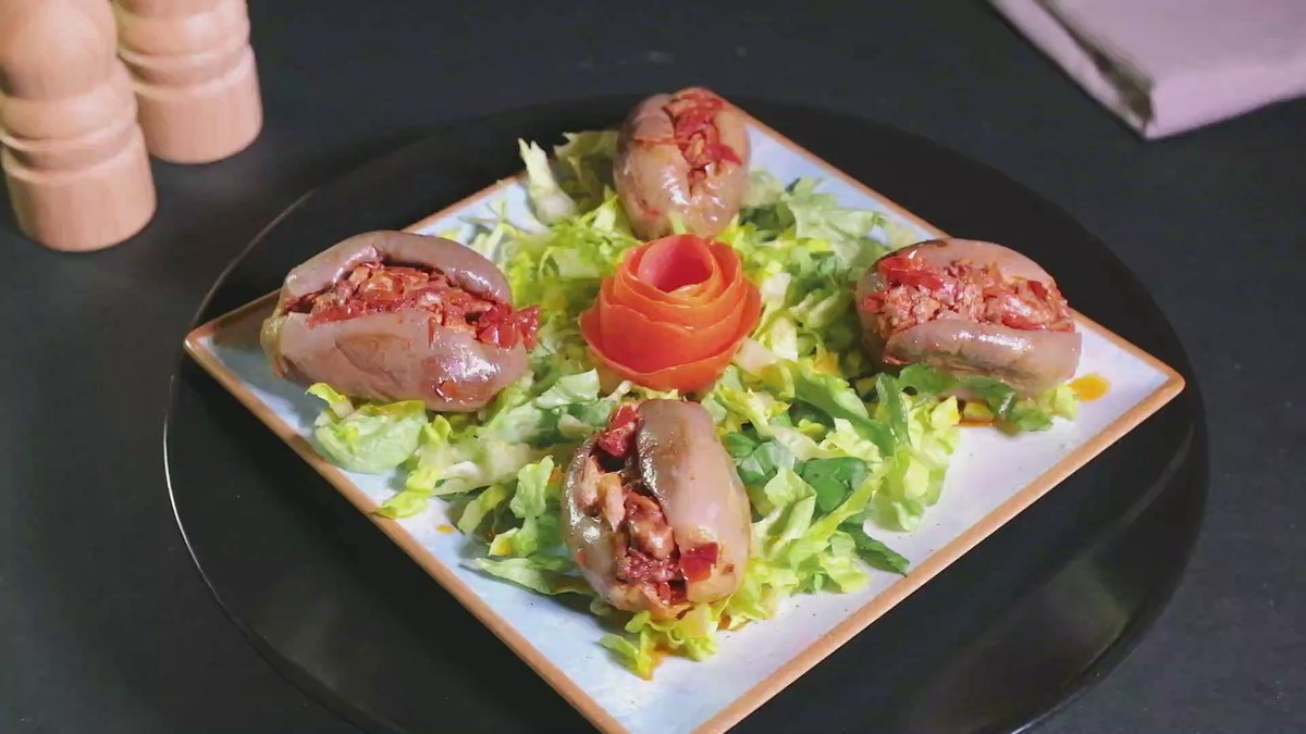 Vinete umplute cu pastă de ardei iute, nucă, ulei de măsline Eggplants stuffed with hot pepper paste, walnut, olive oil